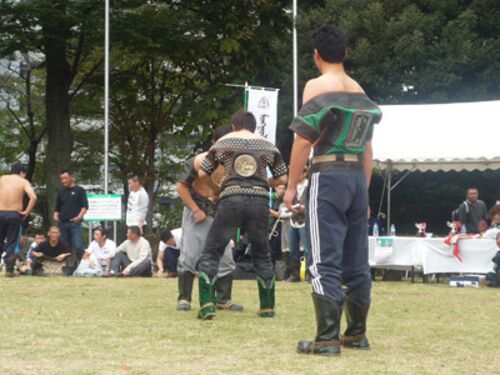 バッドガイナベさん情報で川口駅前にてモンゴル相撲大会があるよ!という話を聞き、家からほどよく近いので出勤前に見てきた。 会場は駅前公園の原っぱで、小さなゲルと民族衣装の人たちを囲む100人くらいの観衆。その中に独特の衣装の力士たちが。あと羊肉…